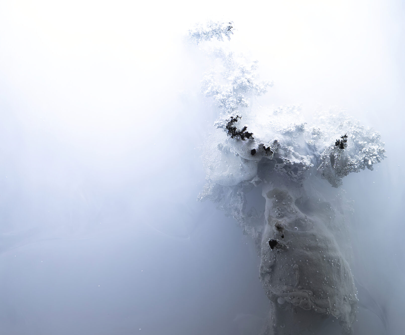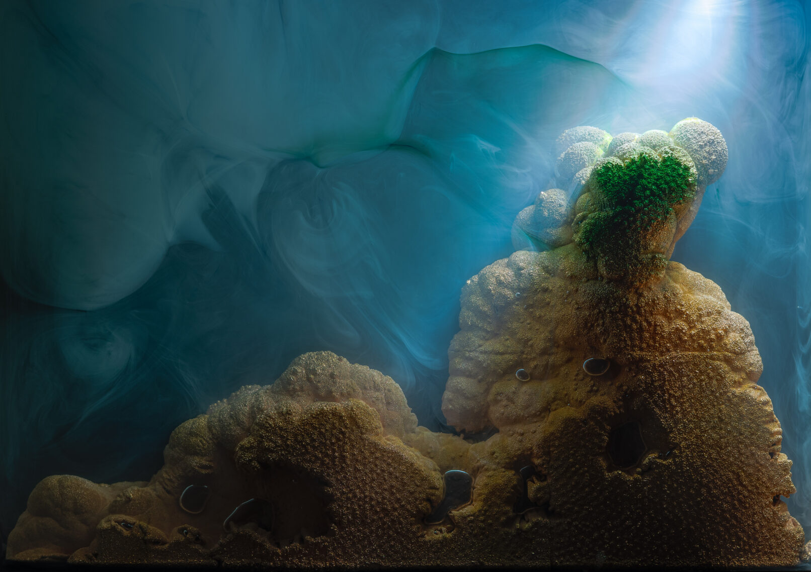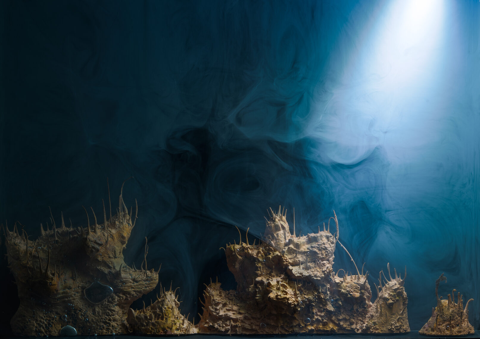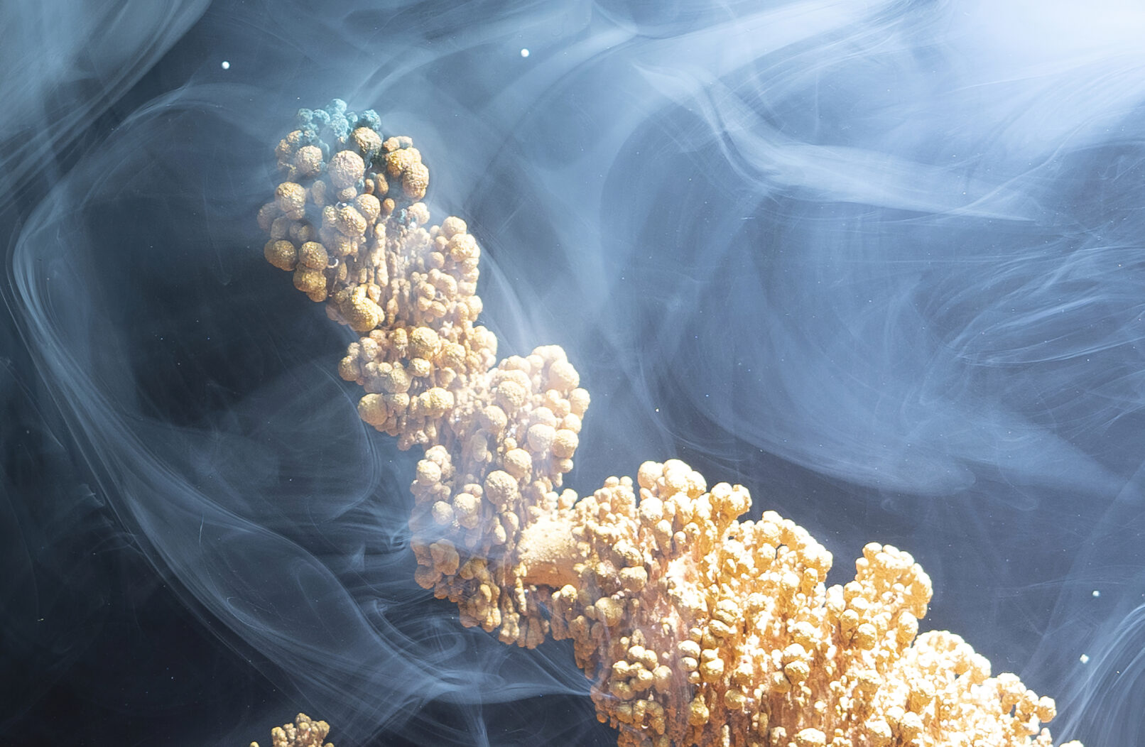 Immersed into electrolytic baths, the metals from printed circuits evolve at high speed, letting their matter escape to reorganize themselves into small worlds, with abundant and chiseled shapes.