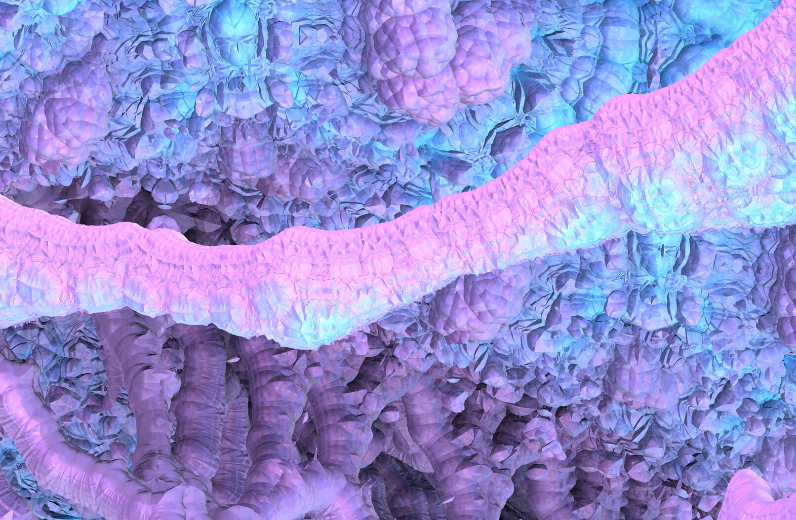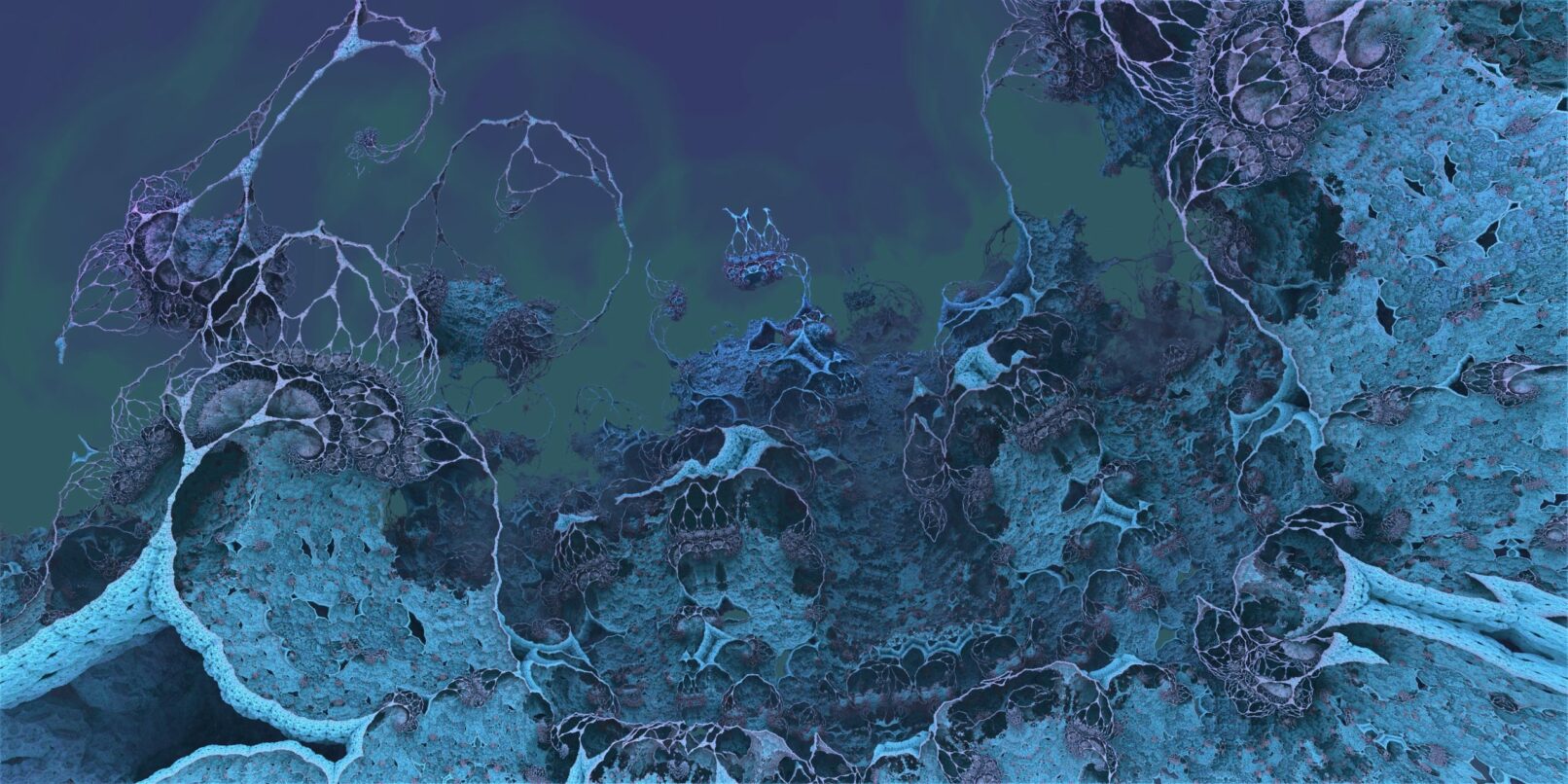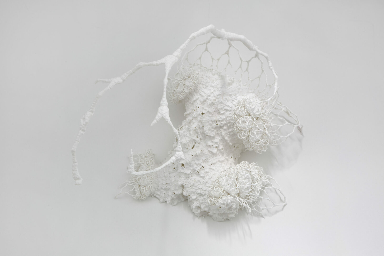 The shapes and structures that appear in this video installation and 3d printed sculptures are created on a computer using equations that mimic the way that elements of the natural world – including roots, clouds and lichen – take, develop or change their form.