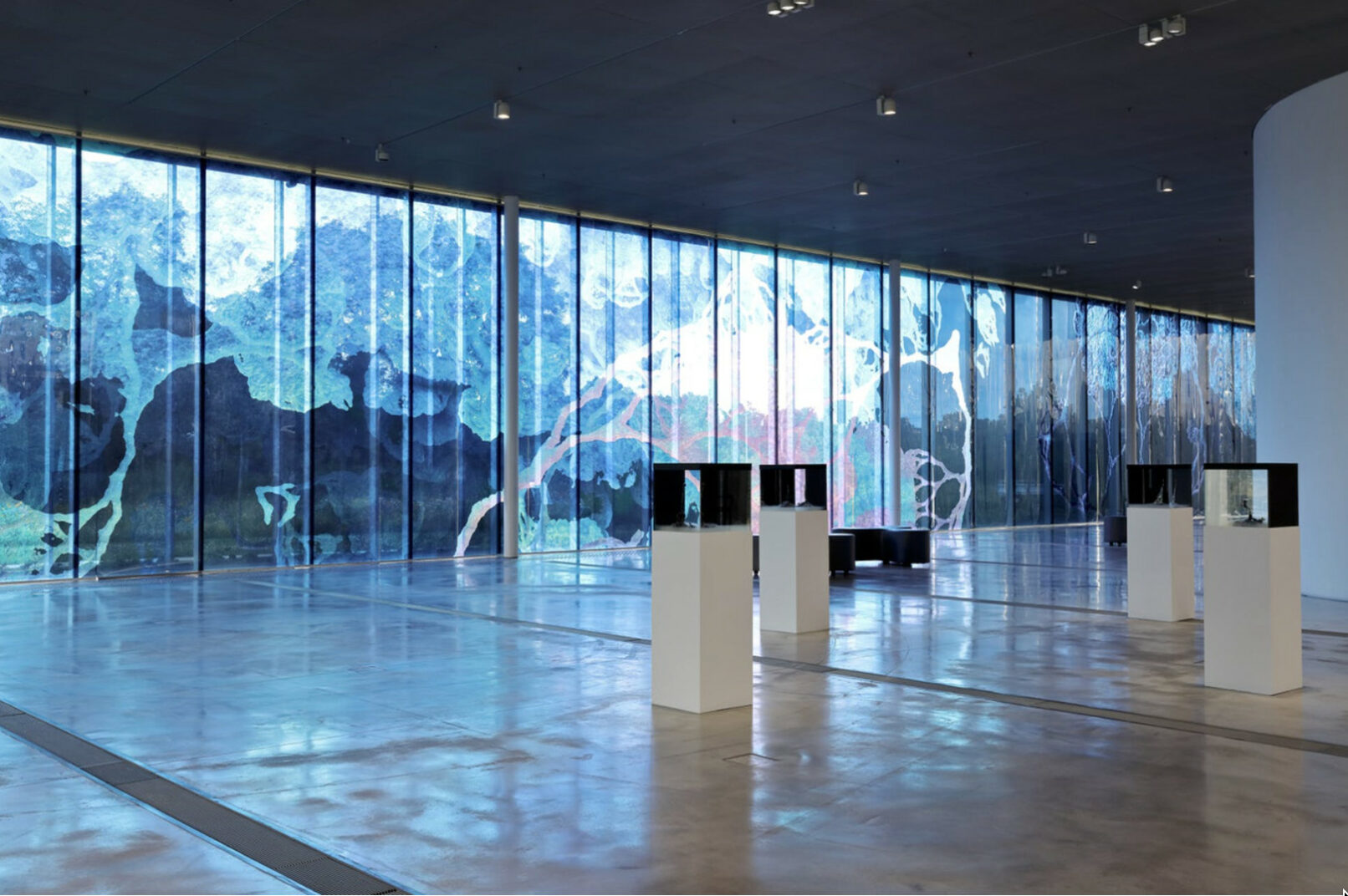 360° video installation with 4 synchronized video projectors in a circular architecture. Color video