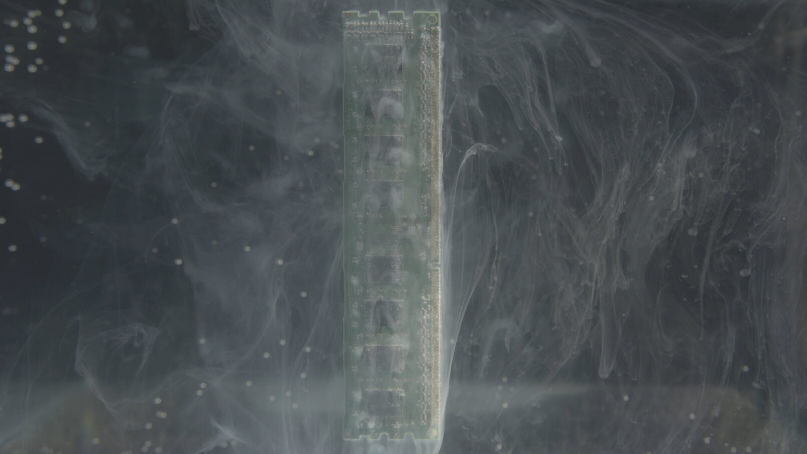 Computer hardware components, water, direct current, controlled electro-conductivity