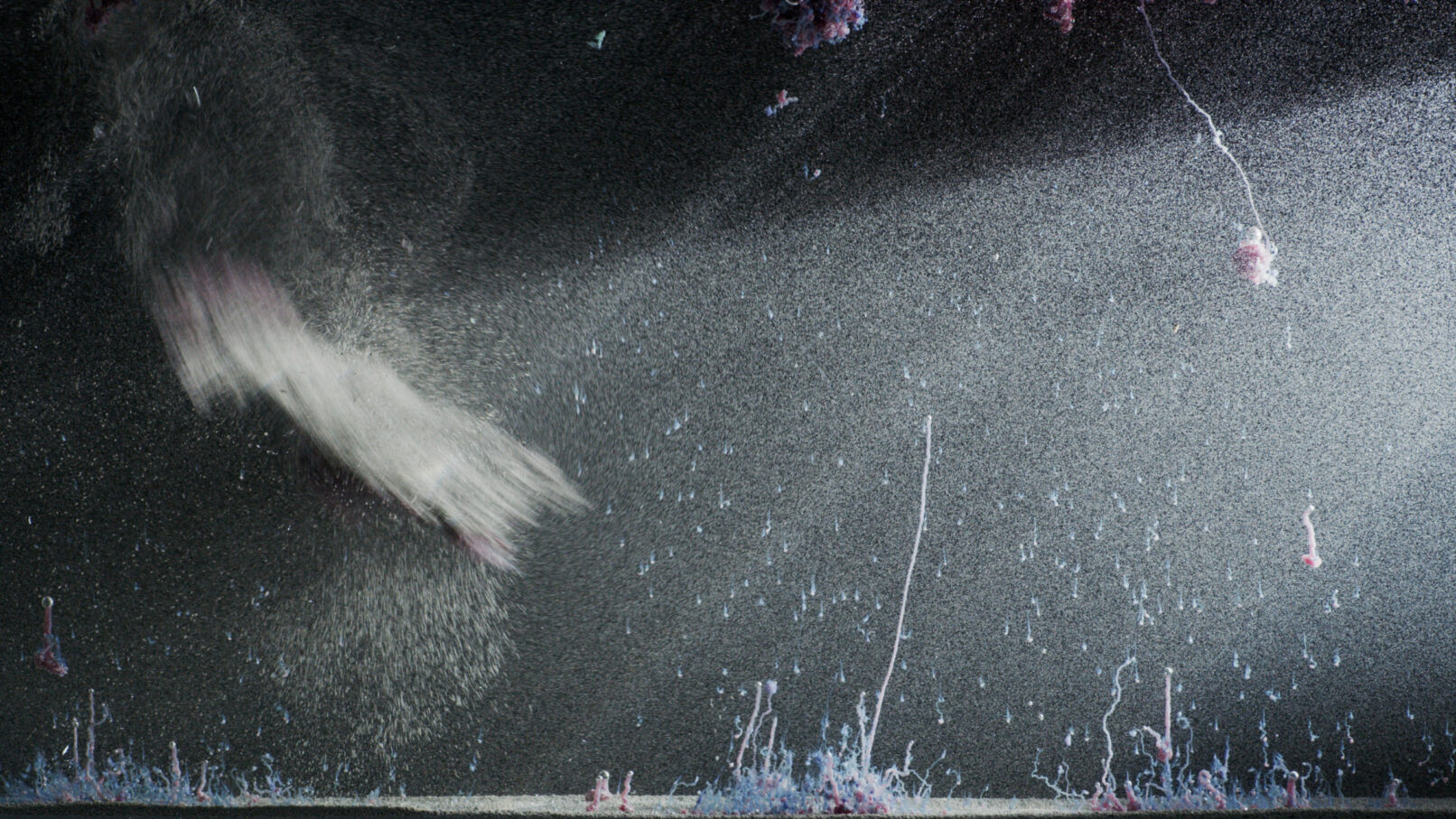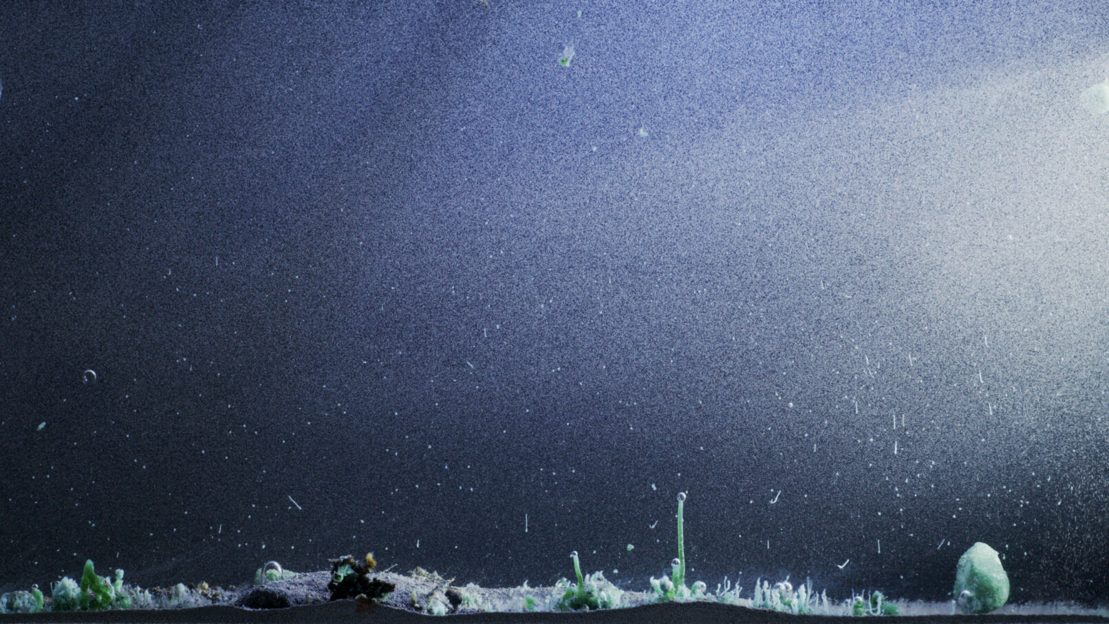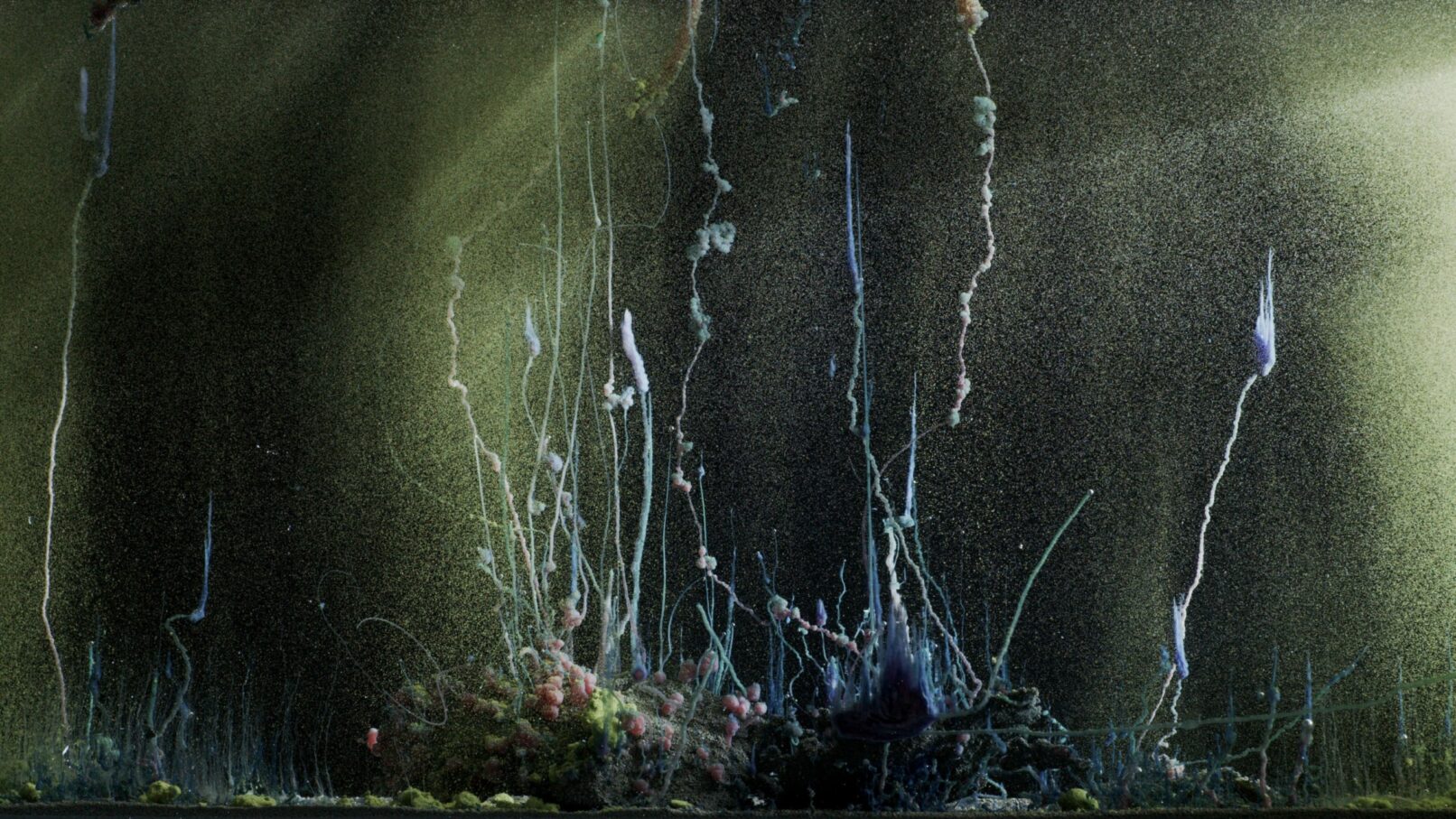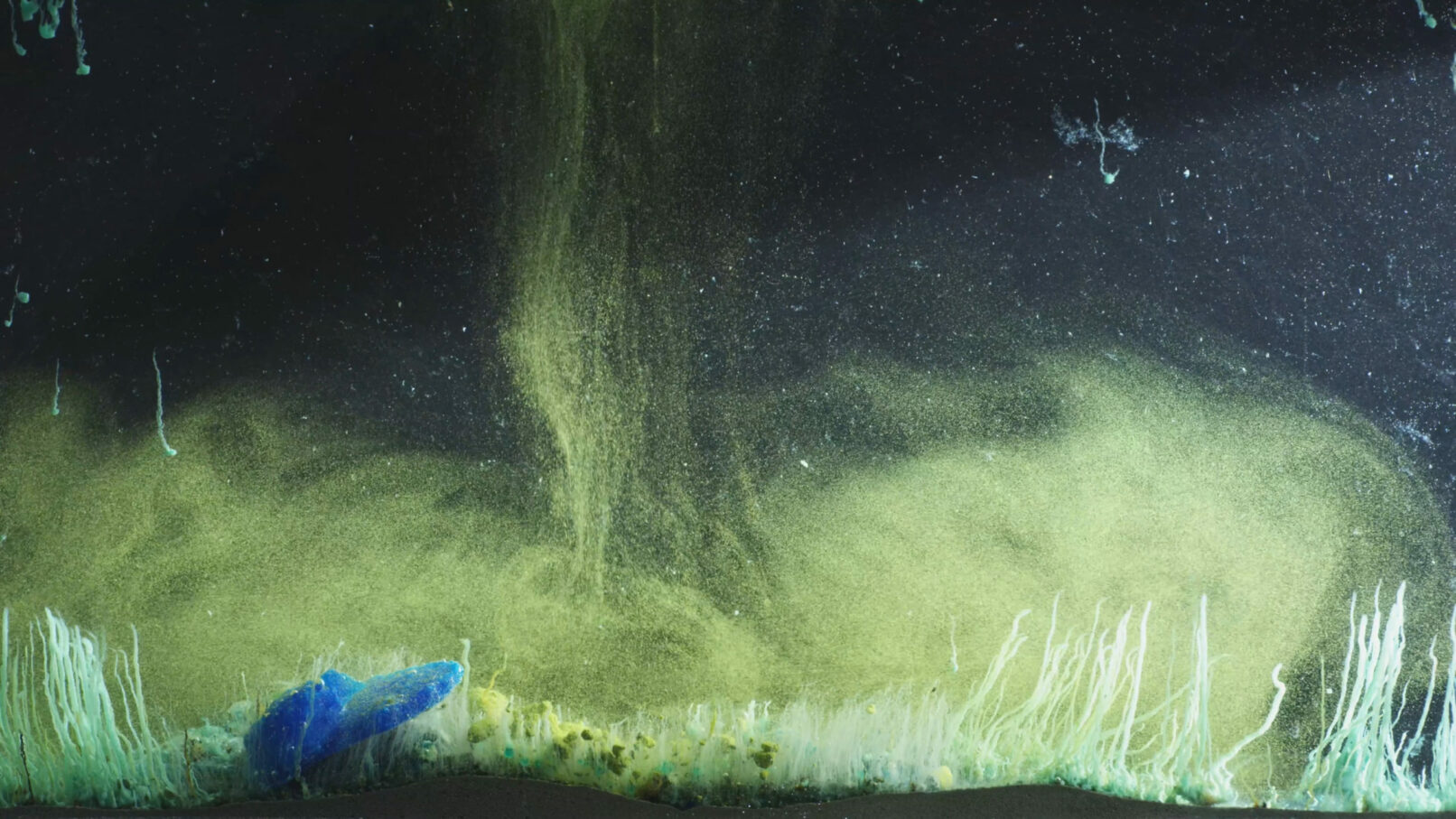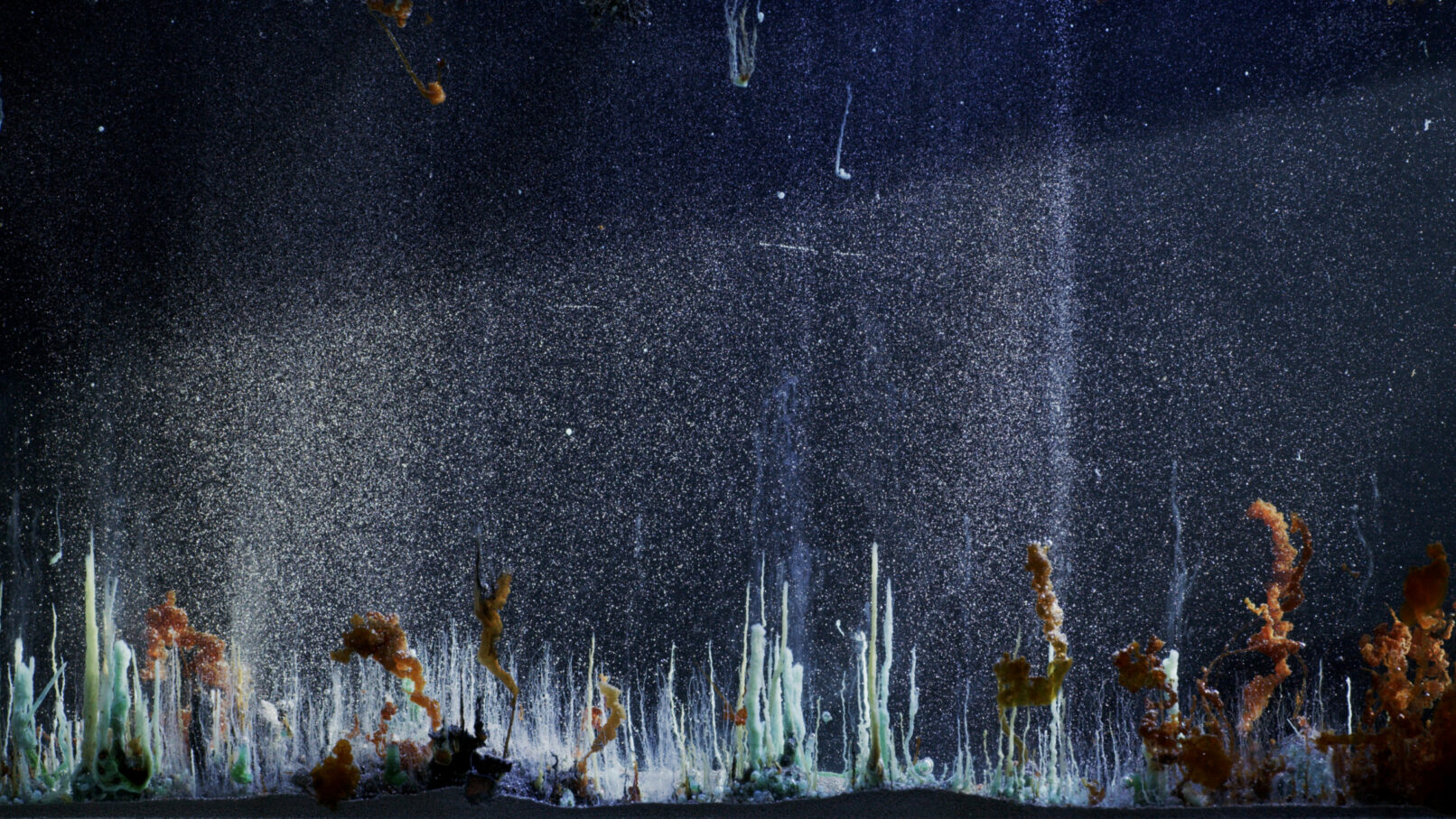 The Présages series brings together aquatic landscapes chemically activated in glass tanks. They are hermetic little worlds cut off from our own, made out of minerals immersed in an aqueous solution. To made them, a whole range of components is deployed to produce a wide variety of colours and shapes.